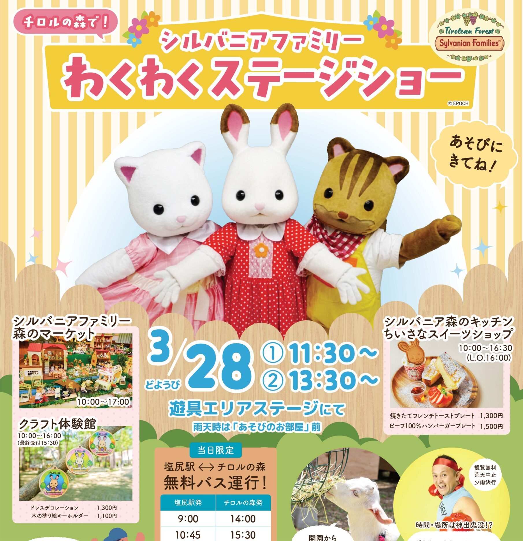動物たちとのふれあい体験、レストランでのお食事も満喫できます。